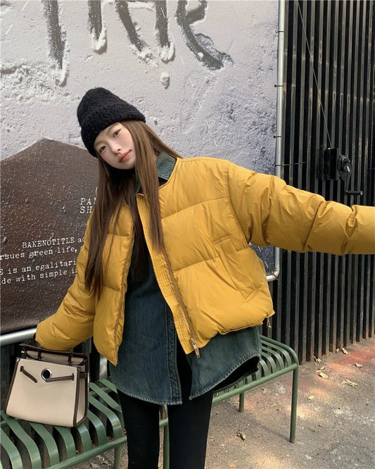 Dec. 復古美式 薑黃圓領麵包羽絨外套 牛仔外套