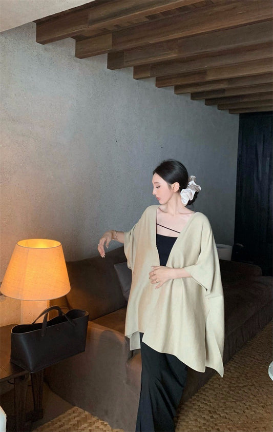 Oct. 慵懶高級感 設計感細肩背心 兩用披肩外套