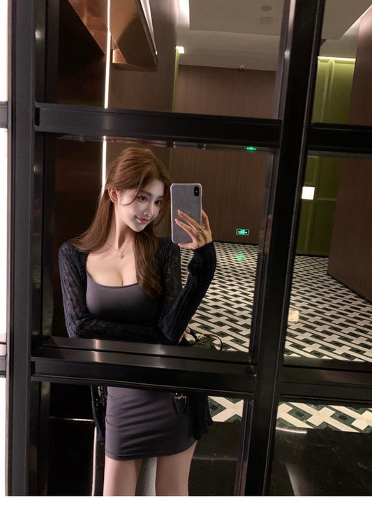 Sep. 氣質縷空百搭V領空調罩衫 百搭包臀裙 藏青