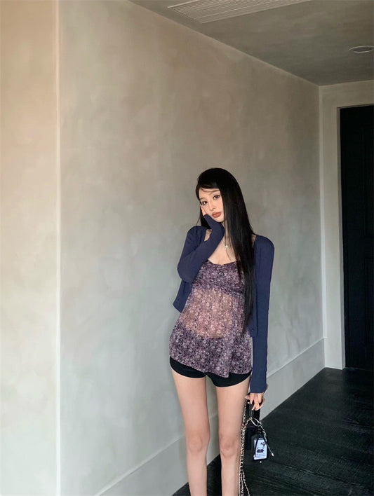 May. Za秘境花園 法式雪紡碎花背心 藍色小罩衫