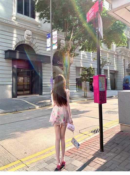 May. 花野仙子 法式收腰荷葉V領背心碎花裙