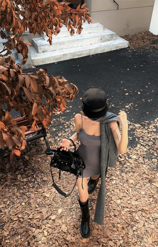 Oct. 辣妹過冬 簡約灰細肩針織包臀裙