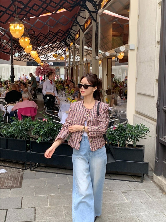 Sep. 韓女通勤百搭 波浪粗呢織感修身外套 浪花粉