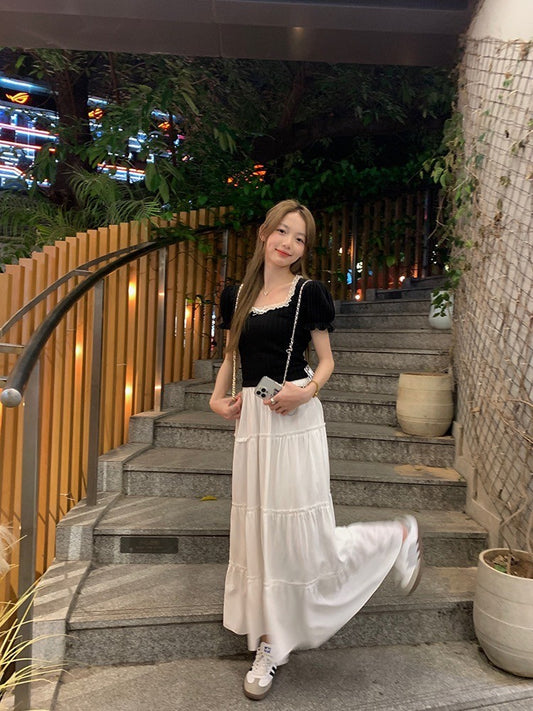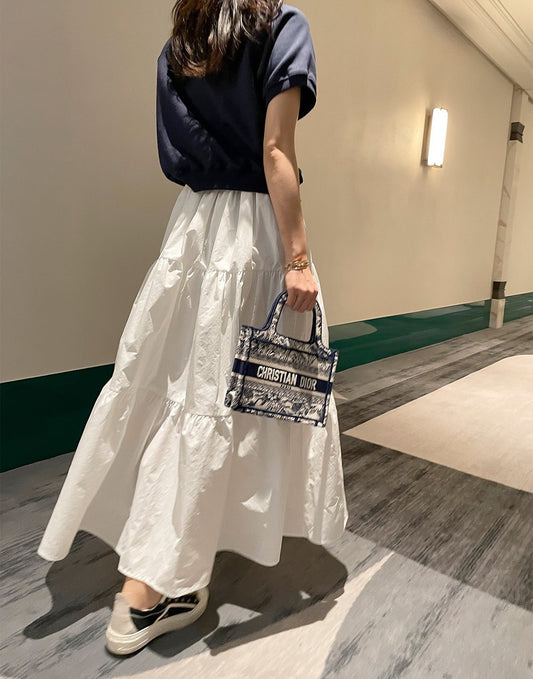 Aug. 大裙擺 高腰鬆緊蛋糕白裙