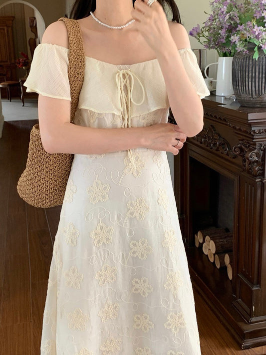 Aug. 跌入夢境 仙女緹花圓領掛脖連身裙
