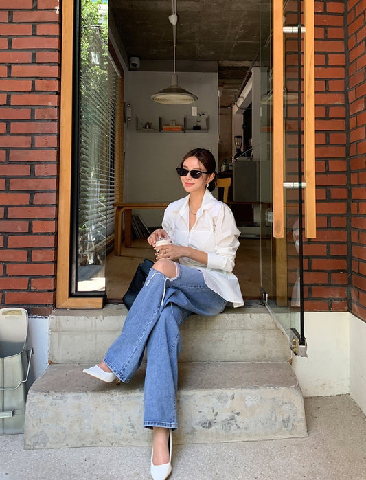 Aug. 經典黑白格紋 慵懶男友風百搭襯衫