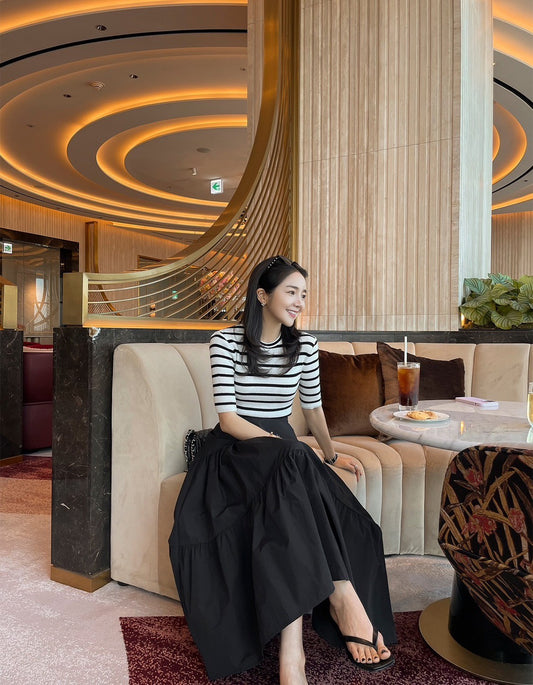 Aug. 韓系百搭通勤傘型遮胯寬大裙擺半身裙 黑色