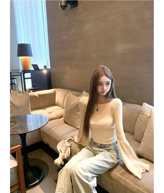 Apr. 粉桃奶芙 慵懶斜肩肌理紋感針織上衣