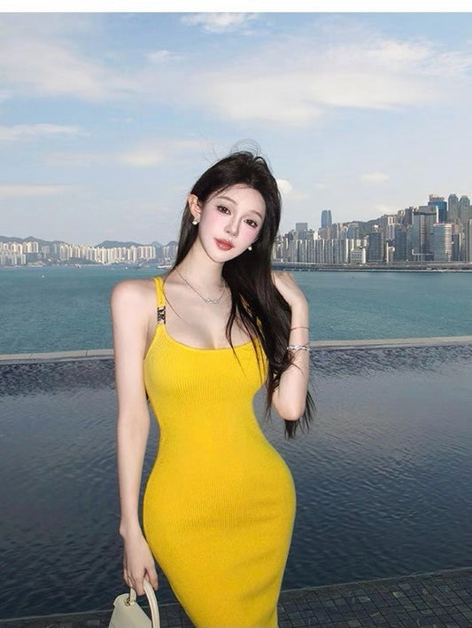 Apr. 宋智雅同款 氣質名媛明黃顯白針織連身裙