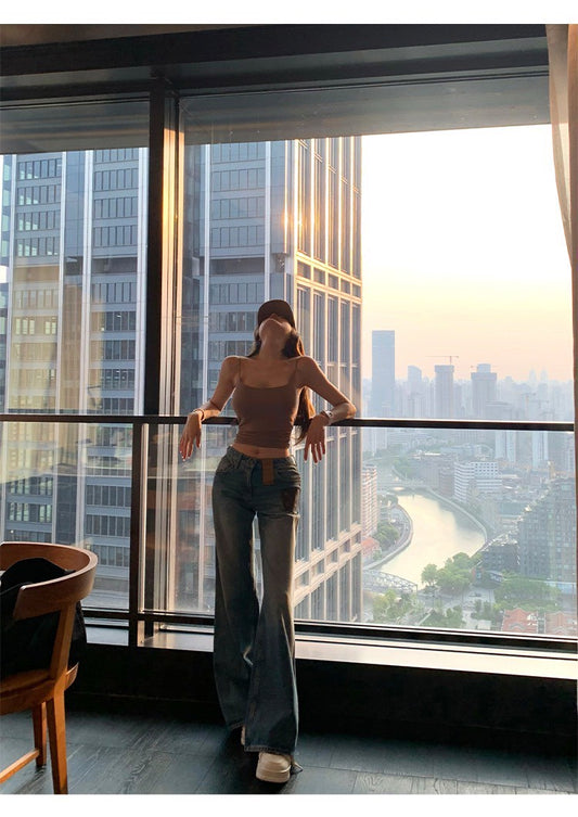 Apr. 顯瘦紙片淺刷色闊腿落地褲