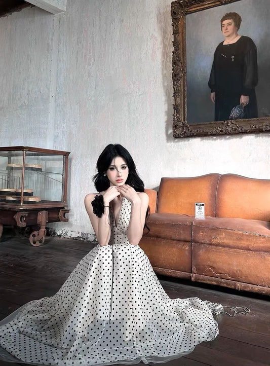 Apr. 法式波點 魚骨收腰顯瘦連身裙