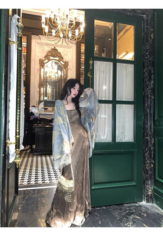 Apr. 墨花微斂 新中式金錢絲暗紋大A擺連身裙