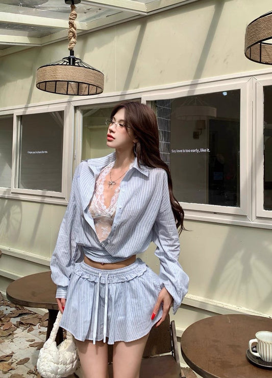 Apr. 陽光少女 慵懶條紋襯衫 花邊半身裙