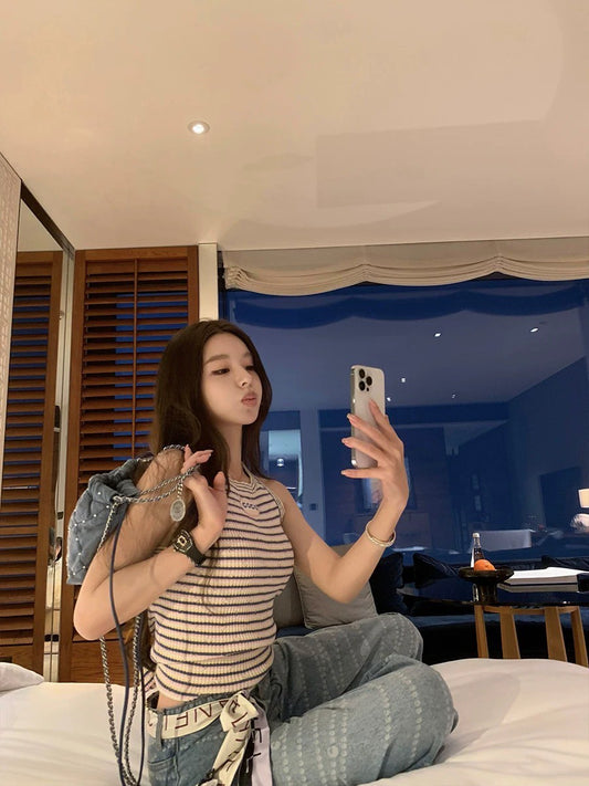 Apr. 輕氧韓女 小個子有好 低飽和藍色針織背心