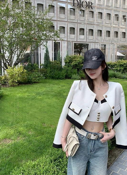 Apr. 清純小白花 氣質連帽百搭短款針織外套