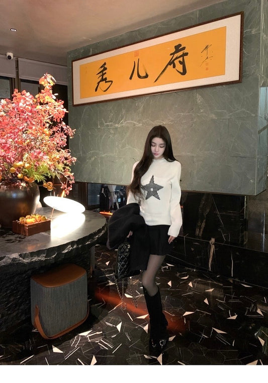 Dec. 時髦輕奢 星星logo連帽針織上衣 白