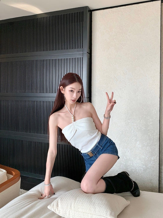 Dec. 復古回歸 辣妹低腰修身原色牛仔短褲