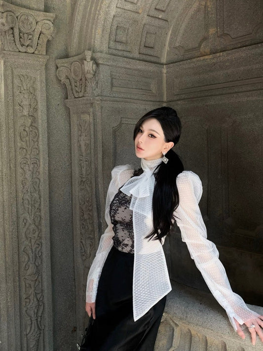 Dec. 氣質千金 疊層波點透紗綁帶襯衫