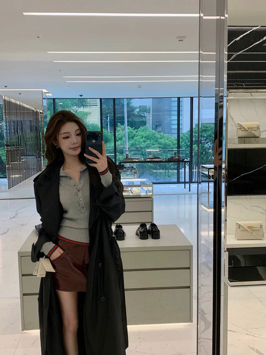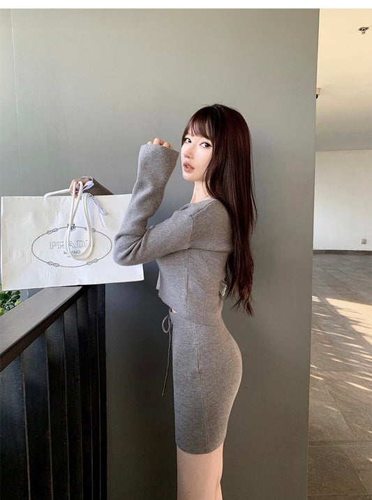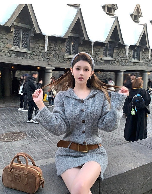 Dec. 前凸後翹RO風紙片人兩穿領針織套裝 短裙版