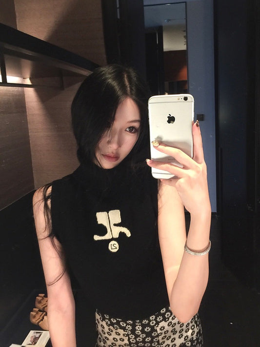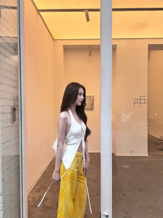 Dec. 性感女神 復古V領露臍設計感針織背心 白