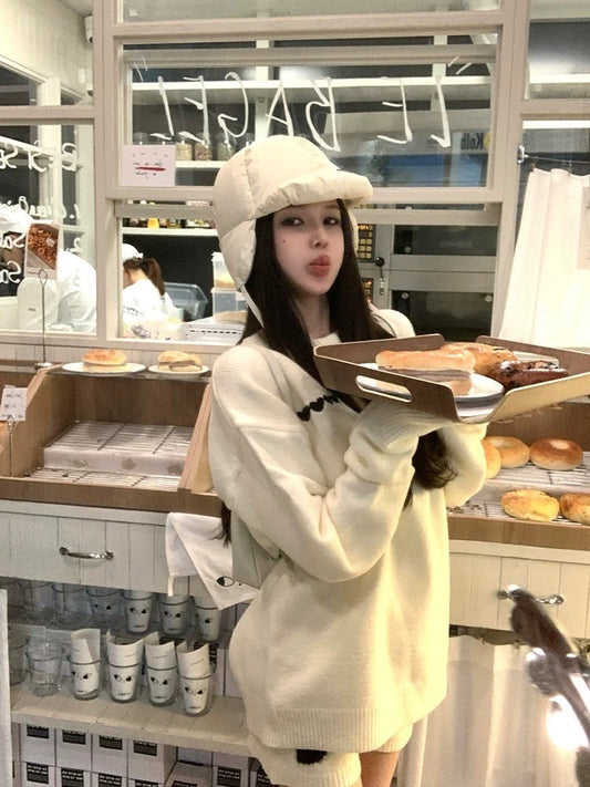 Dec. 怦然心動 奶白愛心緹花圓領休閒短褲套裝