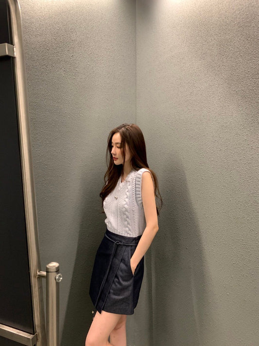 Oct. 友好疊穿 針織排扣後背挖空背心 灰