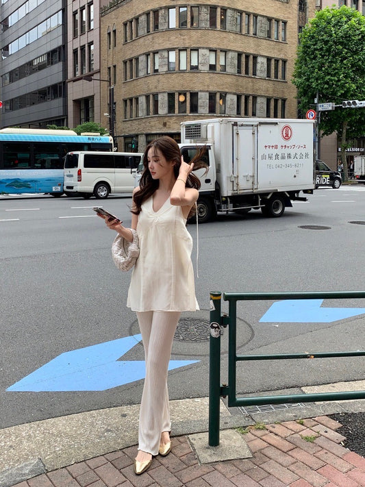 Oct. 韓chic 法式V領細肩背心 白色/黑色