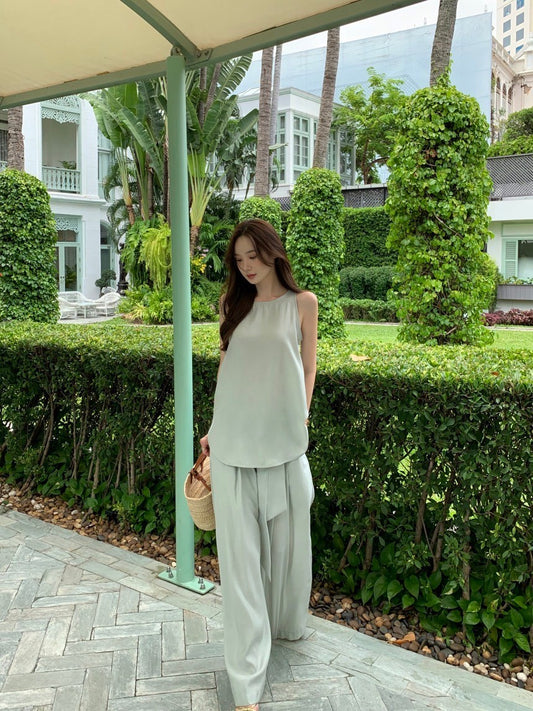 Oct. 羅馬度假 Meurice簡約懶人背心 高腰休閒褲套裝 藍綠