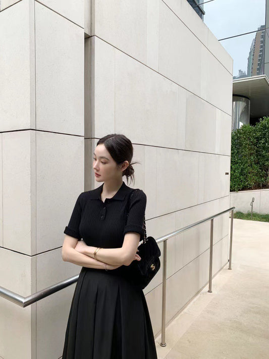 Oct. 老錢經典細麻花紋針織polo領上衣 黑
