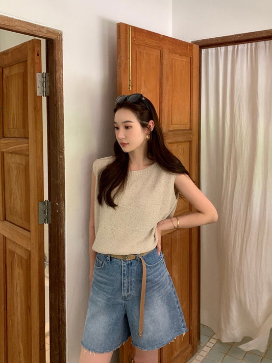 Oct. 出遊走走 簡約圓領無袖針織背心 白/卡其