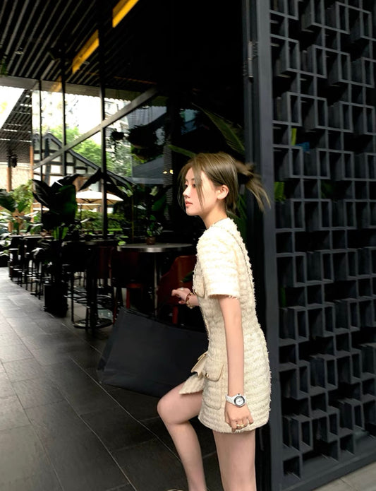 Jul. High line 系列富家千金小香風顯瘦洋裝 米白色