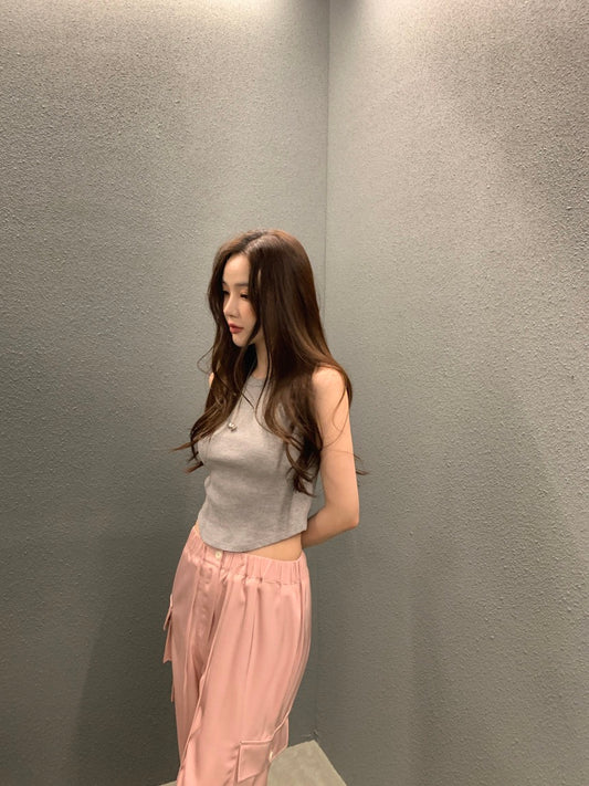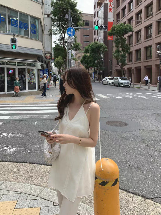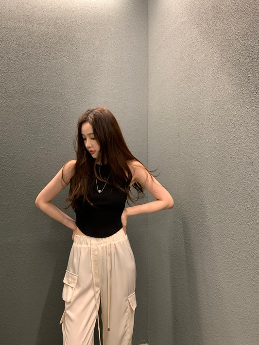 Jul. 韓系chic慵懶綁帶針織挖背背心 米色