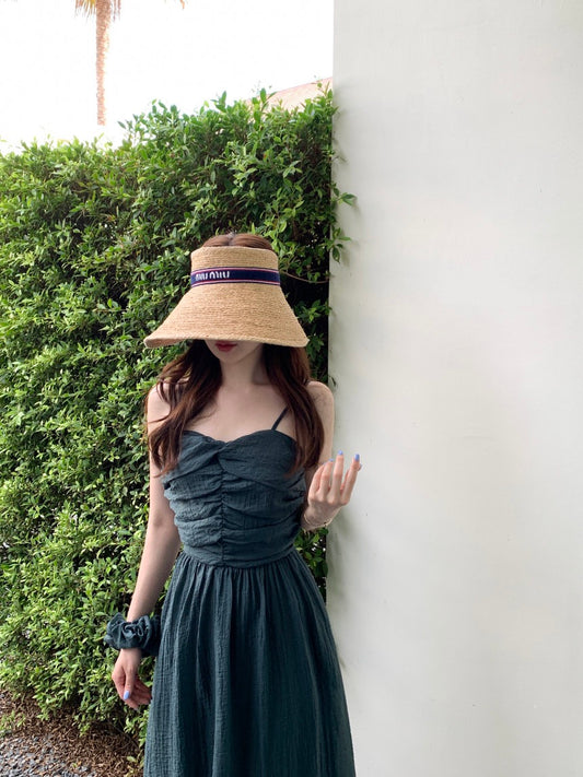 Jul. 溫柔法式壓摺泡泡連身裙 黑色/綠色