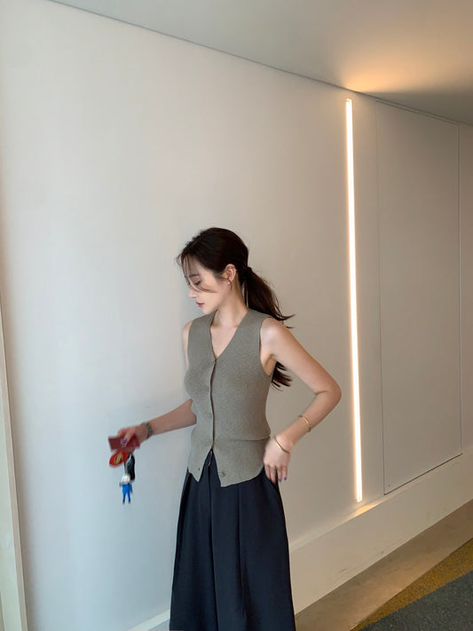 Jul. 簡約針織排扣針織背心 米白