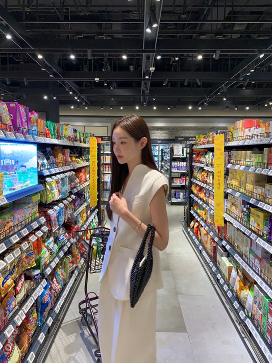 Jul. 優雅復古墊肩西裝背心 高腰闊腿9分褲 米杏/黑