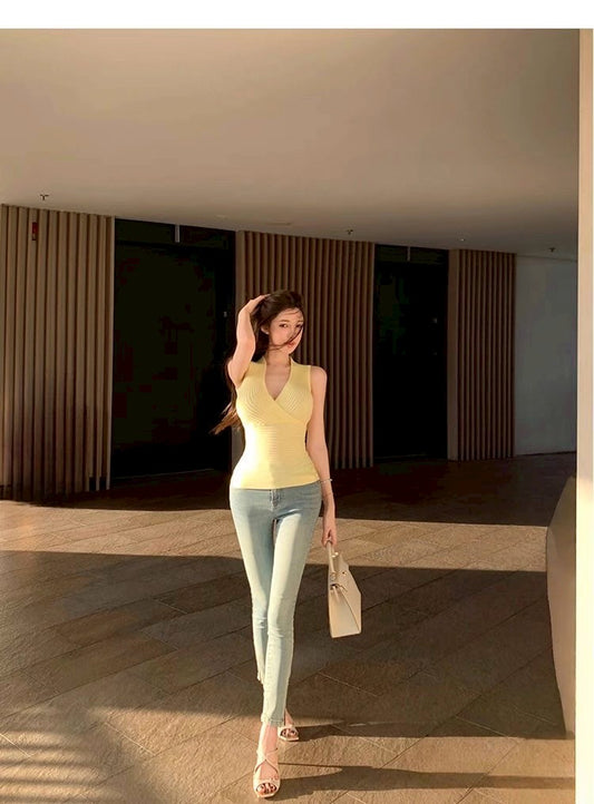 Jan. 明洞大姐姐 極致身材上線 針織彈力交叉打底背心