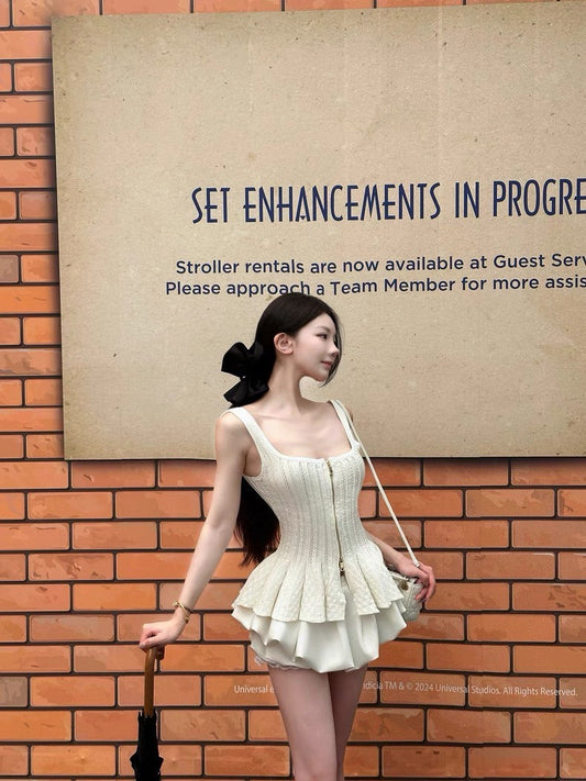 Jun. 初戀白月光氣質蝴蝶結收腰重工背心 純白