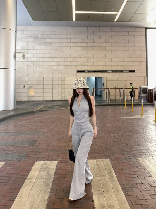25Oct. 美式日常空氣棉袖襯立領背心/抽繩休閒褲 灰色