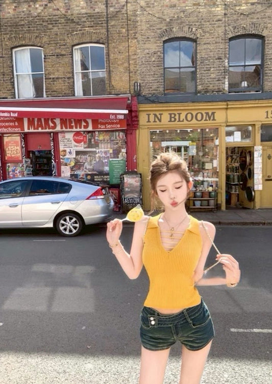 May. 嬌豔陷阱 奶香鵝黃針織V領顯瘦背心