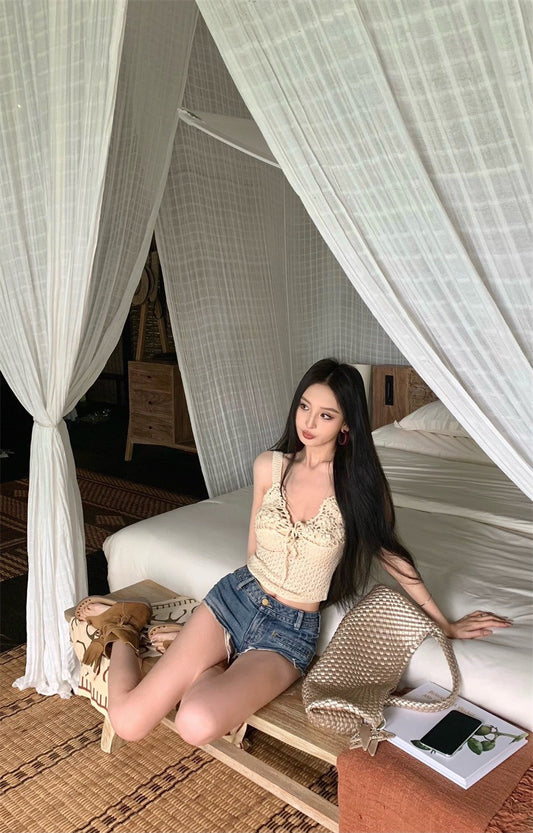25Jul. 韓女性感純欲綁帶縷空V領背心