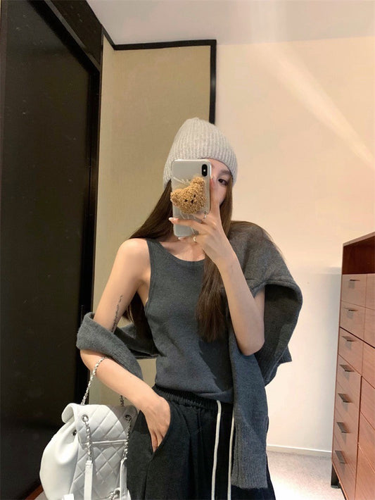 Dec. 慵懶灰系 百搭針織背心 抽繩休閒褲