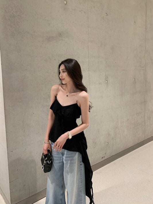 Aug. 溫柔絕美 不規則荷葉修身顯瘦背心