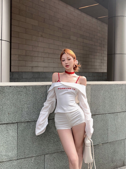 Sep. 歐美辣妹 銀釘挖肩顯瘦彈力背心 白