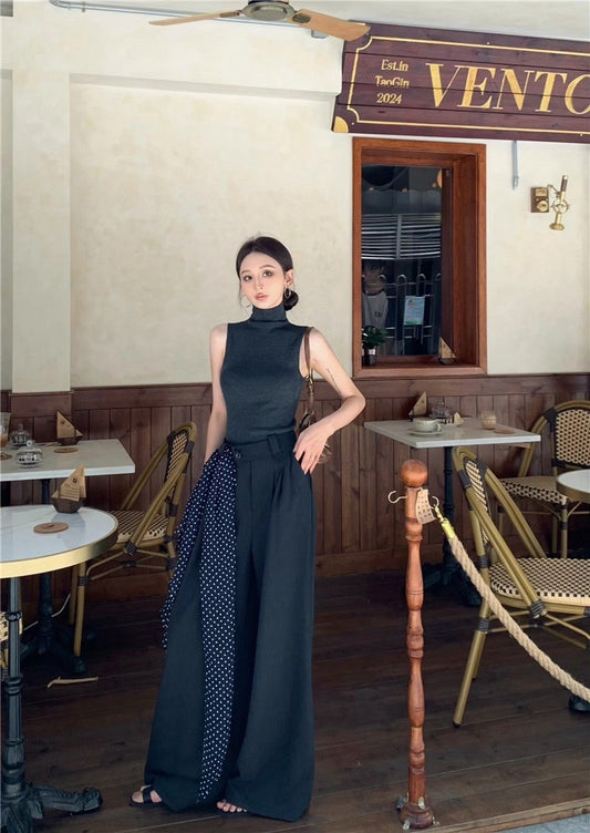 Dec. 氣質女星高領針織背心 神秘灰 高腰壓折修身西裝褲