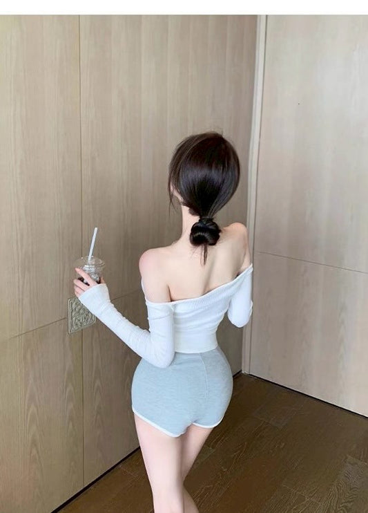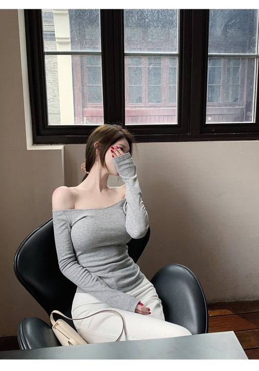 Nov. 絕佳理想型 修身頭肩比打底一字領上衣 灰色