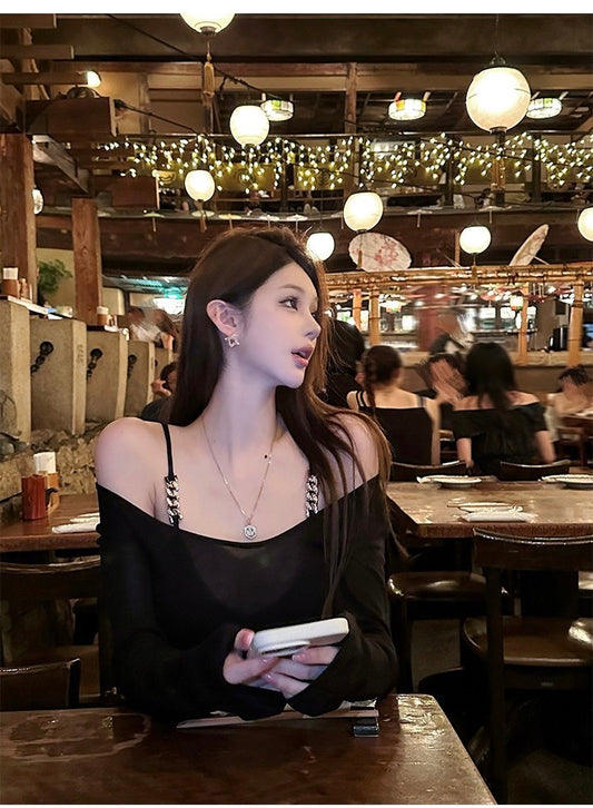 Nov. 微醺夜性感黑天鵝背心一字領罩衫兩件組