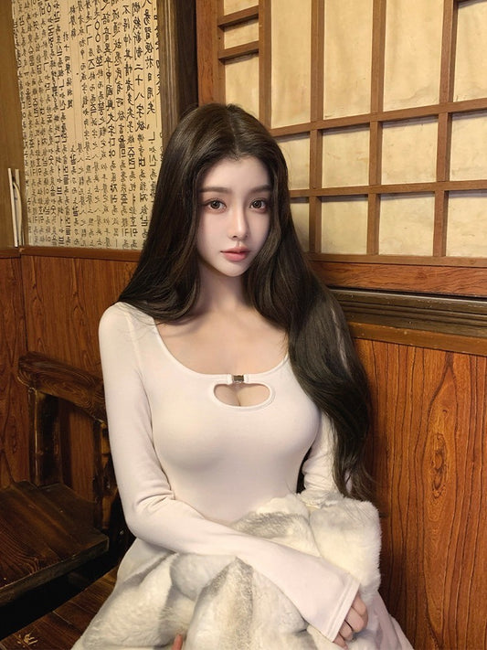 Dec. 偷心天使 心機縷空U領打底上衣 白/黑