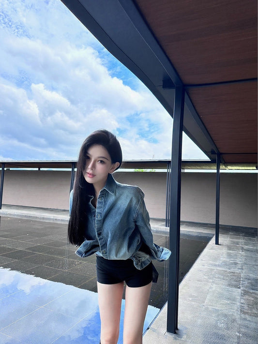 Mar. S1P百搭可扭結設計款刷色牛仔襯衫