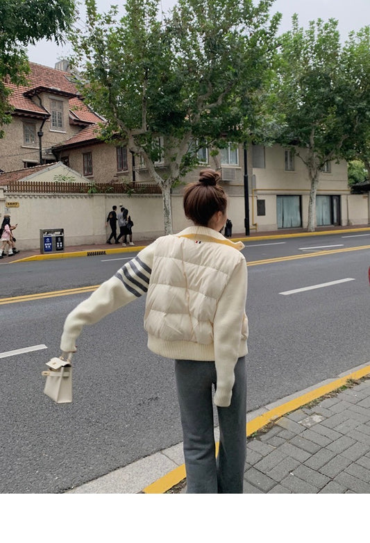 Jan. 艾爾初雪 學院風針織拼接保暖鴨絨外套 杏白