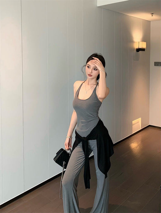 May. Lulu休閒垂垂 美式修身背心休閒褲套裝 黑/灰 黑色開衫